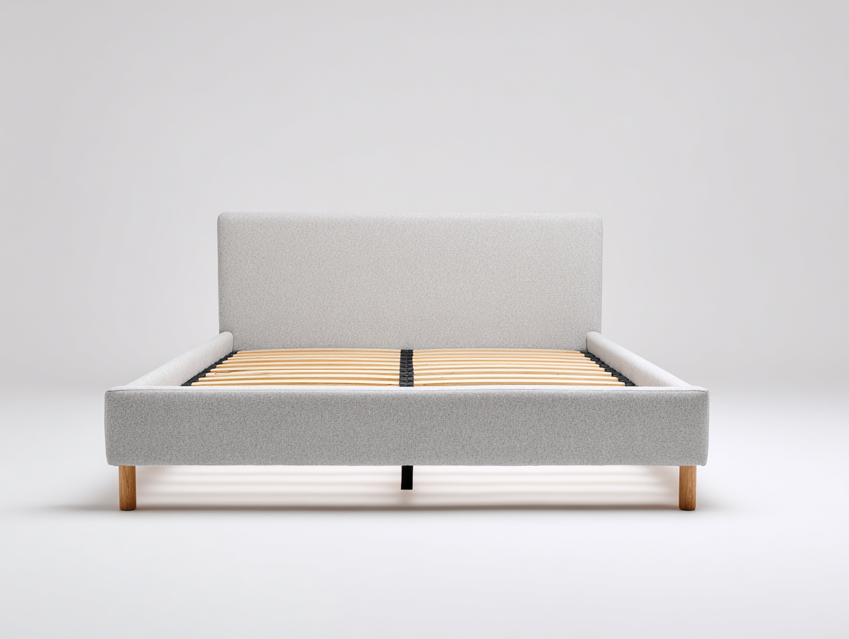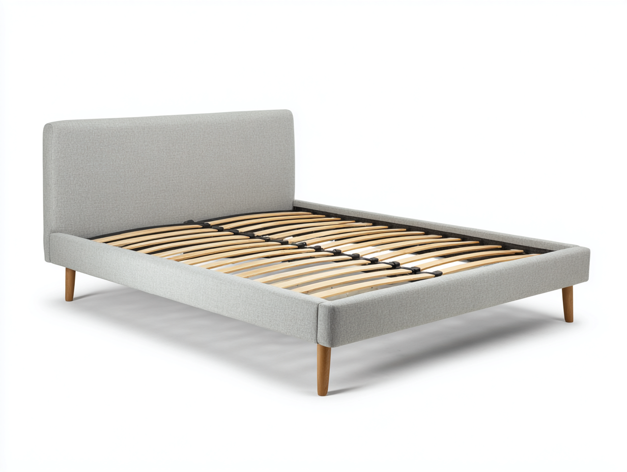 Cama doble tapizada 160x200x90 cm-gris claro-diseño moderno para dormitorio